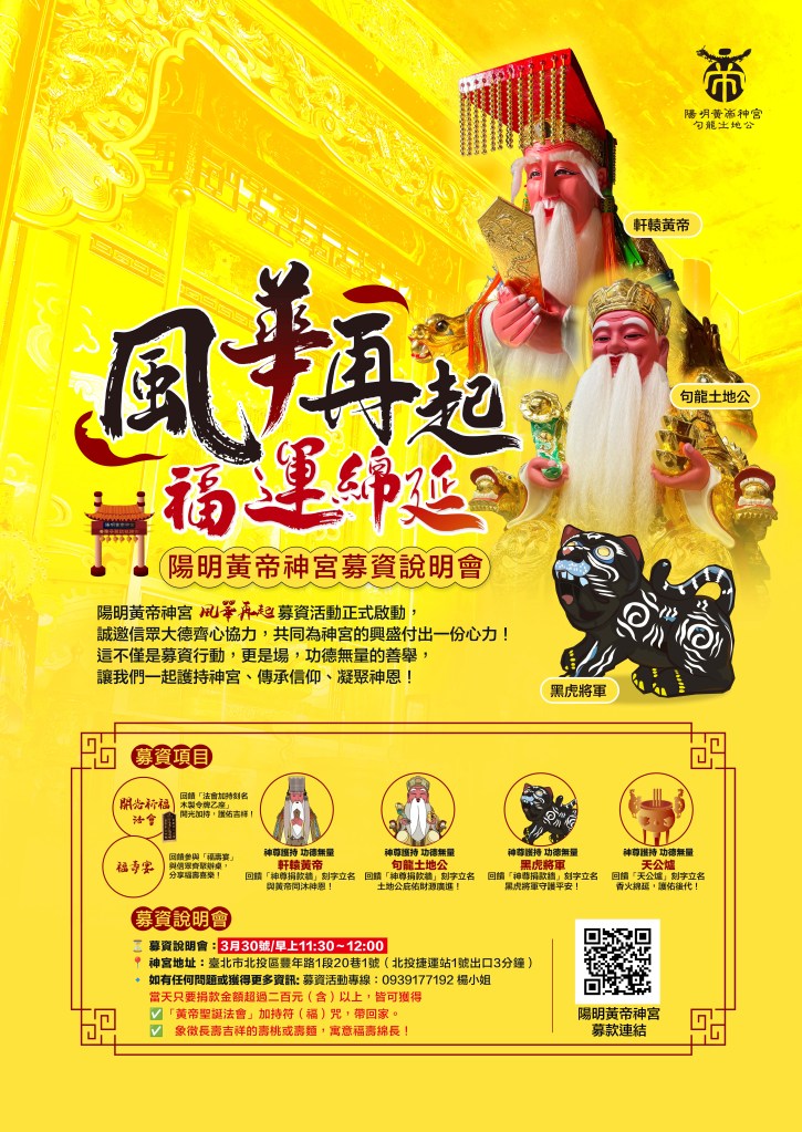 誠摯邀請您,與我們一同共襄盛舉,迎接黃帝聖誕,積福添壽,共享神恩浩蕩!