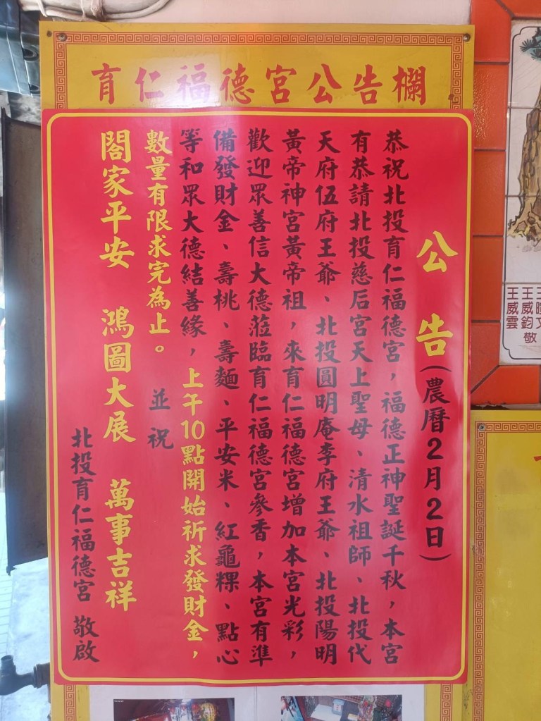 農曆二月初二是土地公福德正神聖誕,又稱「頭牙 」。本宮主神宮軒轅黃帝應育仁土地公邀請,前往一同參加法會共襄盛舉,晚上在陽明黃帝神宮設宴辦桌餐會,在雙神的祝福下,信眾得平安健康、福壽長年、大發財