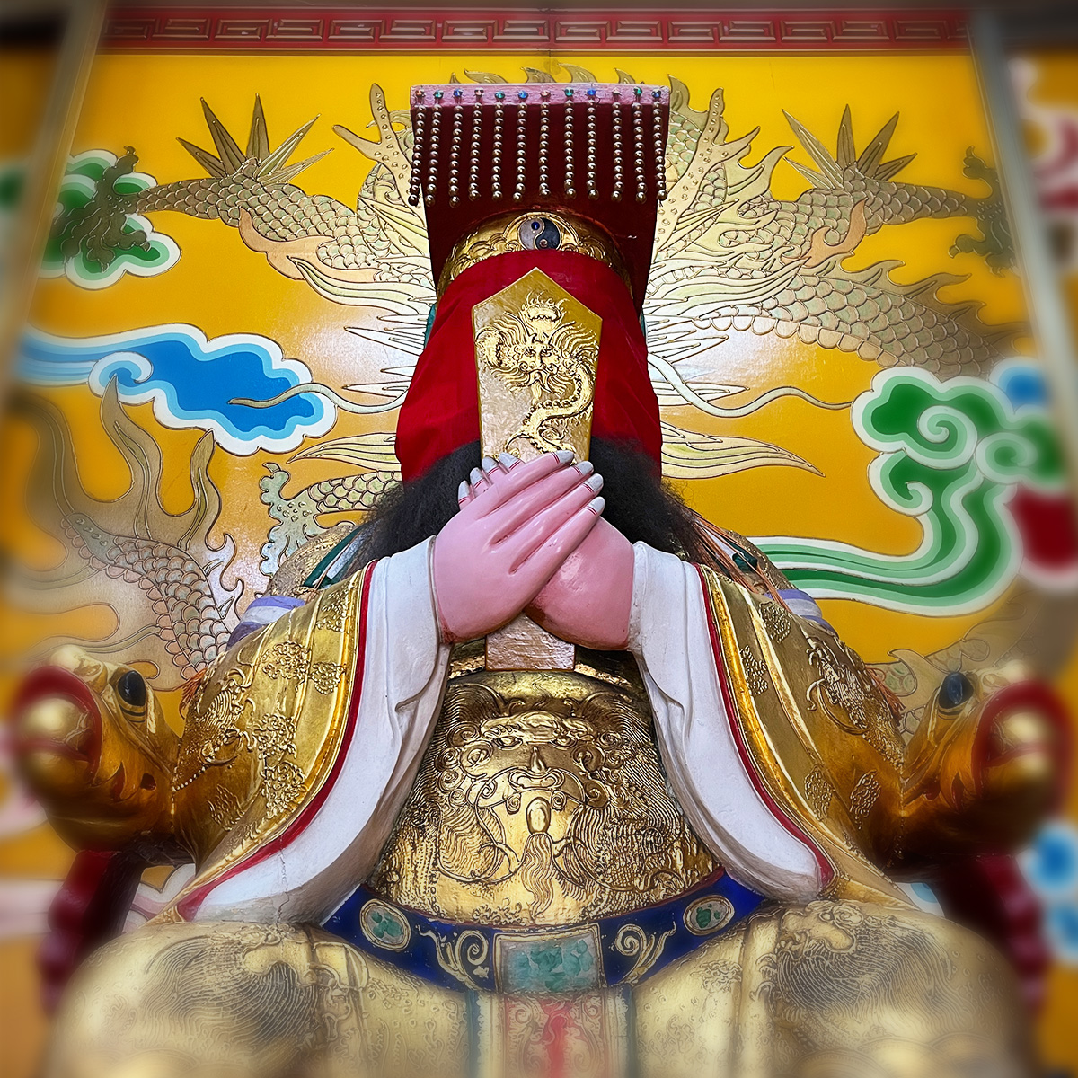 全台最大的軒轅黃帝神尊,自民國七十年建立至今,己斑駁泛黃,有些微裂縫及脫落,2024年退神後,尚未有足夠經費進行整修。