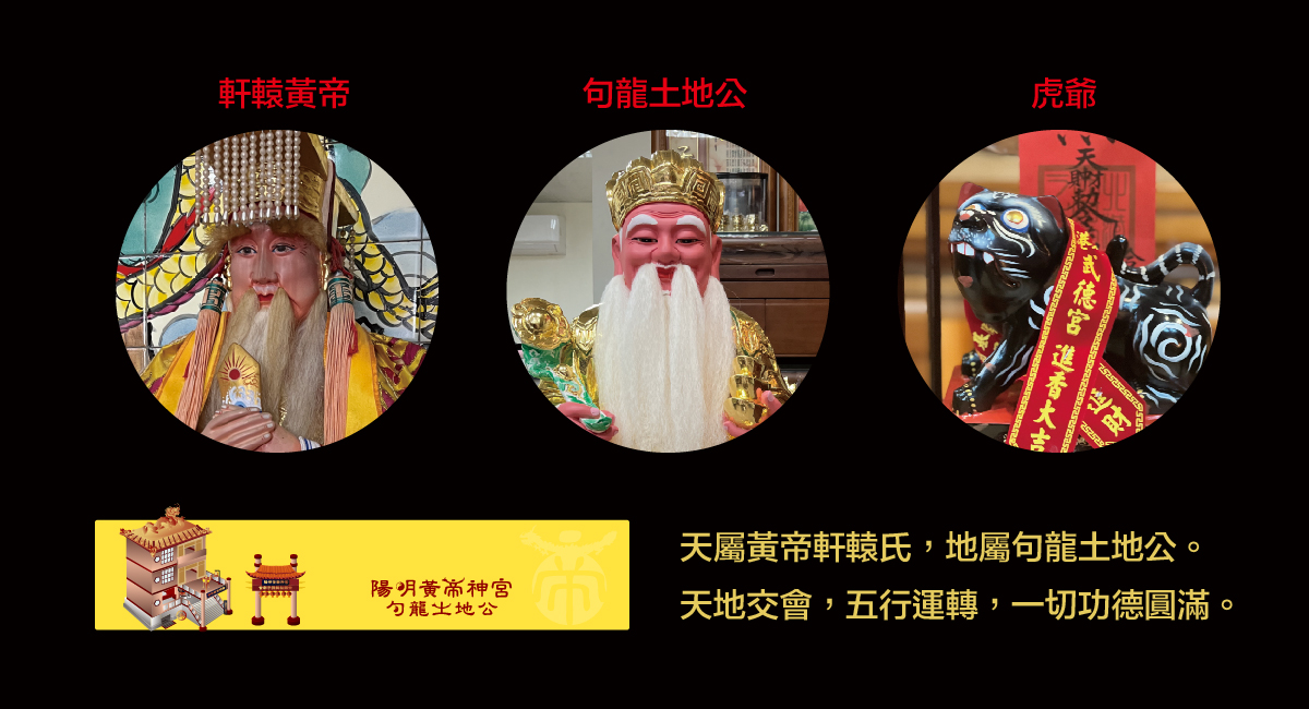 在請示軒轅黃帝後,魏先生將軒轅黃帝時代時,對於治水土有功的句龍土地公請到陽明黃帝神宮,「天屬黃帝軒轅氏,地屬句龍土地公。天地交會,五行運轉,一切功德圓滿。」 未來陽明黃帝神宮將在軒轅黃帝與句龍土地公的護祐下,恩澤廣被。