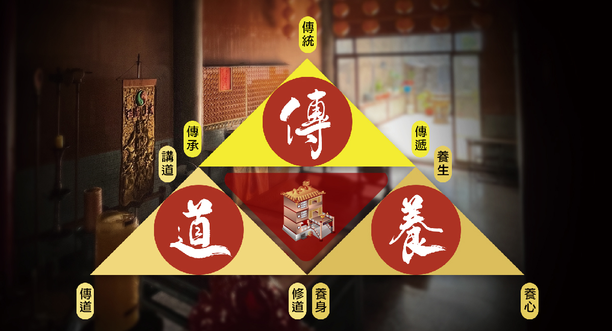 我們將保留神宮《傳統》「講道」、「傳道」、「修道」的核心精神,並利用黃帝內經的「養生」、「養身」、「養心」之術,打造一個讓心靈「靜」與「淨」的地方。並《傳承》神宮裡