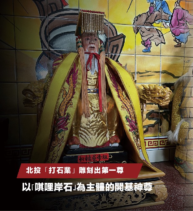 利用當年北投「打石業」雕刻出第一尊以「唭哩岸石」為主體的鎮殿神尊。
