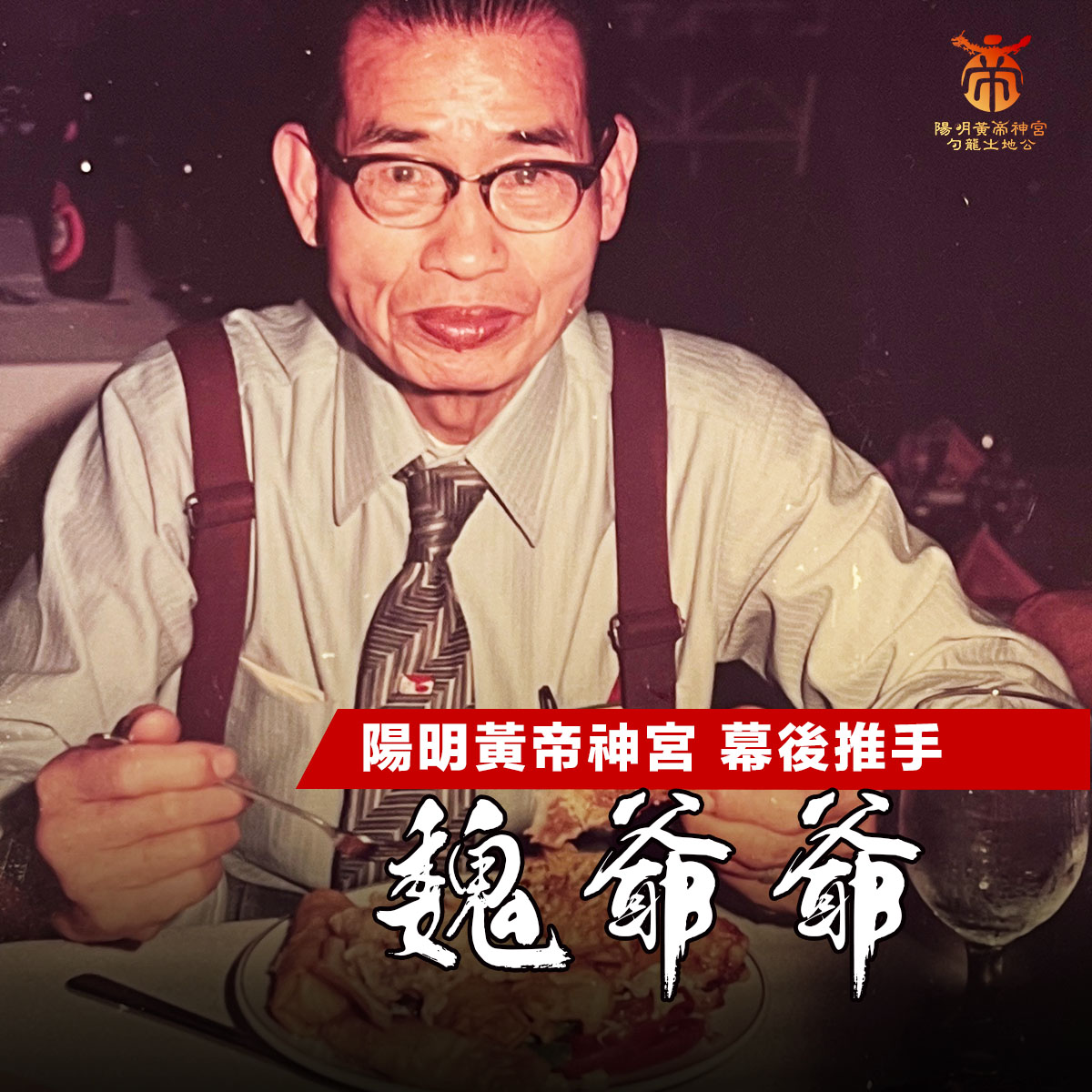 民國70年代,魏爺爺的一場大病,在軒轅黃帝神醫之下痊癒,因而起心動念興建神宮,沒有財團和大企業的資助,靠著財伯、廟婆、地方居民及曾經與魏爺爺雜貨店往來的迪化街盤商們籌資,一點一滴的累積資金蓋起神宮。